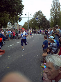 Via een official van de 3 oktober vereniging hoorden we, dat een van de steltlopers was gevallen en dat deze ongelukkige met een ambulance was afgevoerd. Meteen waren er weer de geintjes: "Het duurde ook zo lang, doordat ze de stelten niet in de ambulance kregen!"