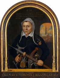 Bij Tim thuis aten we Chinees alvorens we vanaf de Amsterdamse Poort door het geboortestraatje van Kenau liepen, waar in veel etalages aandacht werd besteed aan deze bijzondere vrouw.