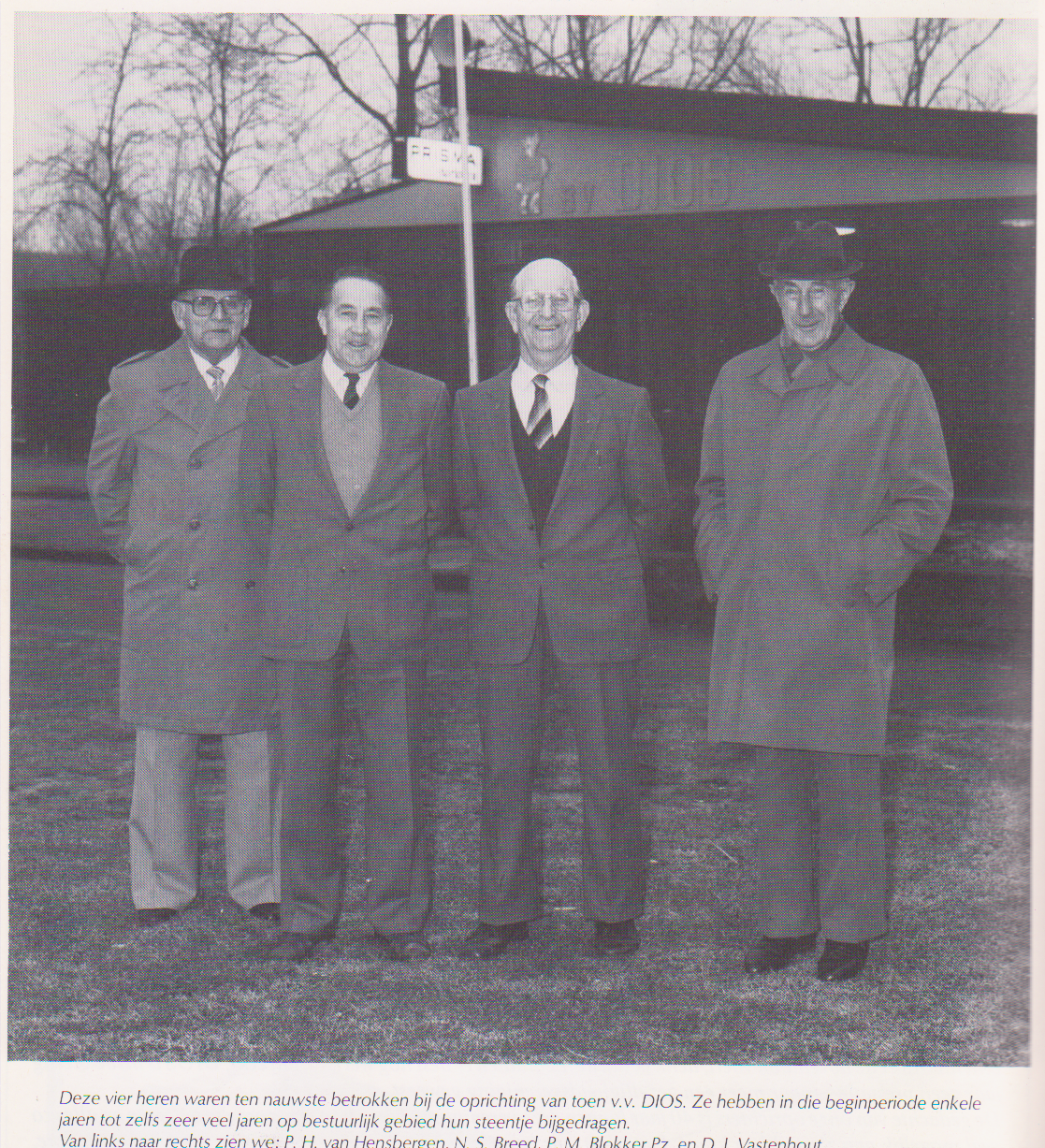 Vandaag is het exact 70 jaar geleden, dat in "De Rustende Jager" in Nieuw-Vennep DIOS werd opgericht. DIOS staat voor "Doelen Is Ons Streven", een heerlijke archaïsche naam. Eén van de oprichters is N.S. Breed. Inderdaad: mijn oom Niek, die op de foto hieronder als tweede van links staat.