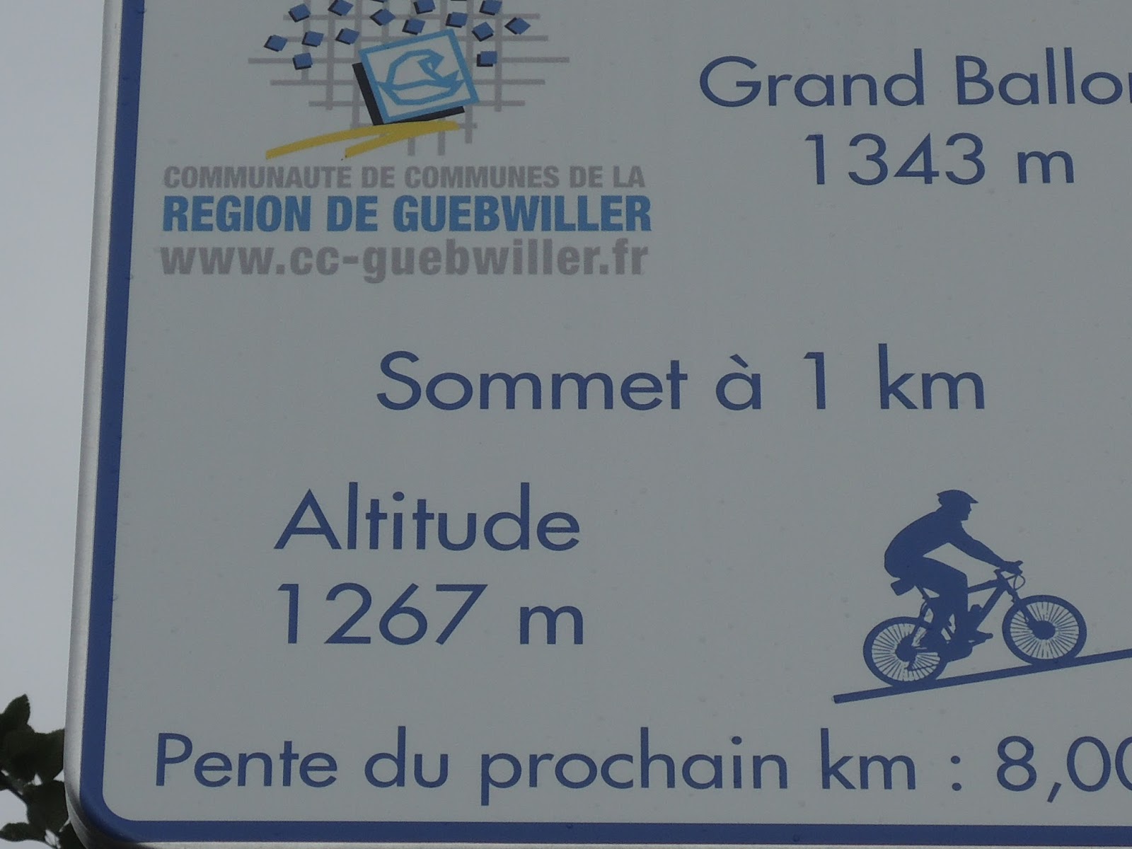 We reden nog een kilometer of 6 langs de Thur om bij Willer-sur-Thur te beginnen aan de klim naar Goldbach. Deze klim begon op 400 meter hoogte. Na een kilometer kwam het eerste bord met 15 kilometer naar le Grand Ballon. We wisten wat ons te doen stond.